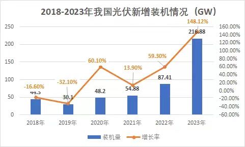 裝機(jī)量再度刷新!光伏市場(chǎng)持續(xù)火熱! 1月26日,國(guó)家能源局發(fā)布2023年全國(guó)電力工業(yè)統(tǒng)計(jì)數(shù)據(jù)。2023年1~12月光伏新增裝機(jī)216.88GW,同比增長(zhǎng)148.12%。 去年,對(duì)于光伏行業(yè)來(lái)講是爆發(fā)式增
